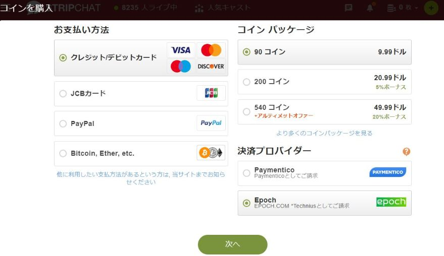 Stripchatは海外サイトであるため支払いはドル決済です。ドル決済に慣れていない場合は、1コイン当たりいくらになるのかも確認する必要があります。
