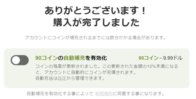 支払方法にチェックを入れて、購入するコインパッケージにチェックを入れます。